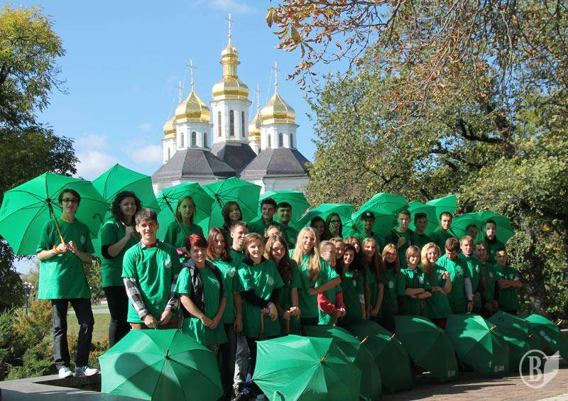 Молоді люди у зелених футболках та із зеленими парасольками пройшли від Валу до «Мега-центру» та знов повернулися на Красну площу Чернігова з піснями, нагадуючи про елементарне – берегти чистоту: чисту воду, чисту землі, чисті продукти.
