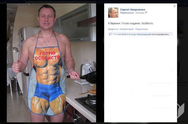 Воно розміщує фото в соцмережі, а потім під ніком "Серж" ще пише коменти про замовність та підступну боротьбу з опозицією. Аверченко будь чоловіком і якщо пишеш коменти, то хоча б підписуйся особисто. А взагалі, своїми коментами ти (аверченко) вкотре показуєш свої "розумові" здібності.
