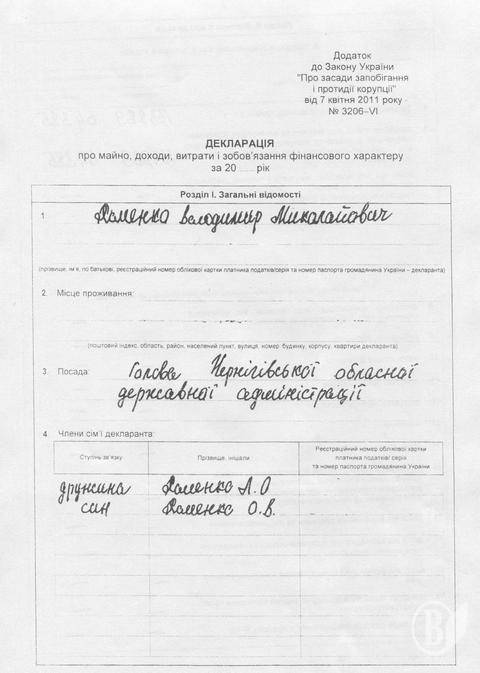 Як повідомляв "Високий Вал", голова Хоменко задекларував 165,484 тис. гривень доходів, отриманих в 2011 році.