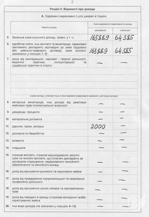 Раніше, він задекларував 171,509 тис. гривень доходів, отриманих в 2010 році.