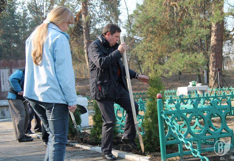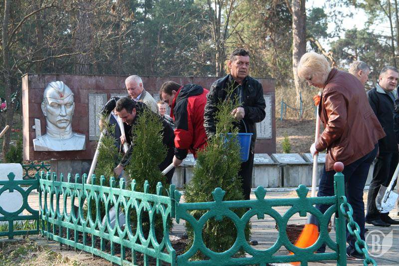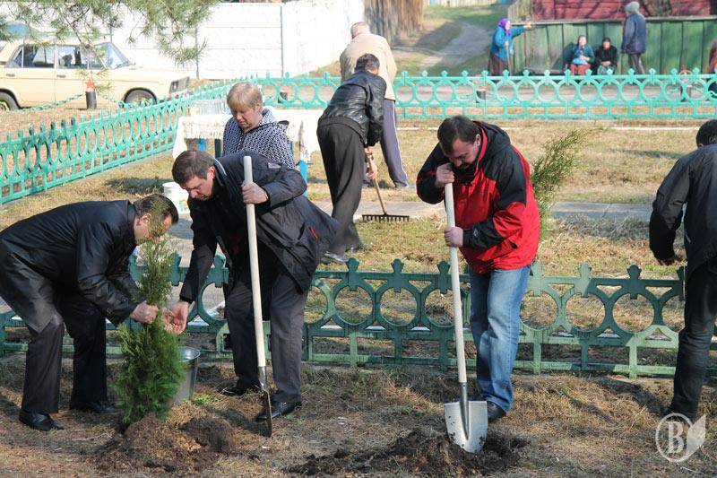 … У рамках щорічної весняної Всеукраїнської акції з благоустрою та озеленення «За чисте довкілля» керівники області та району прибрали навколо братської могили у Мисах і висадили 16 туй.