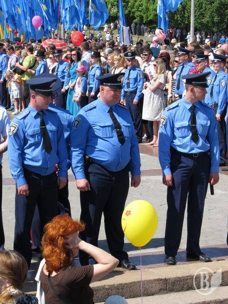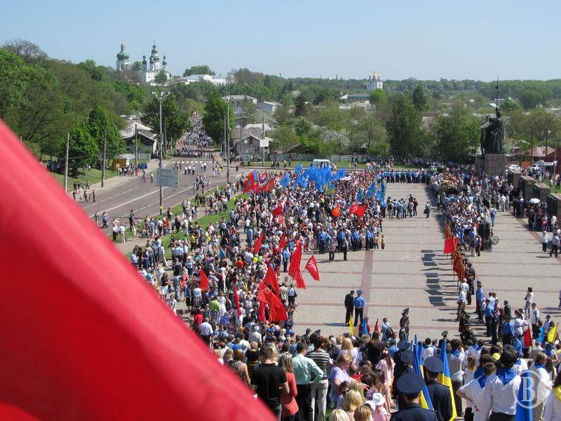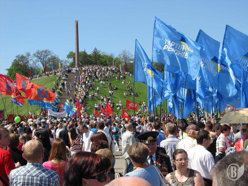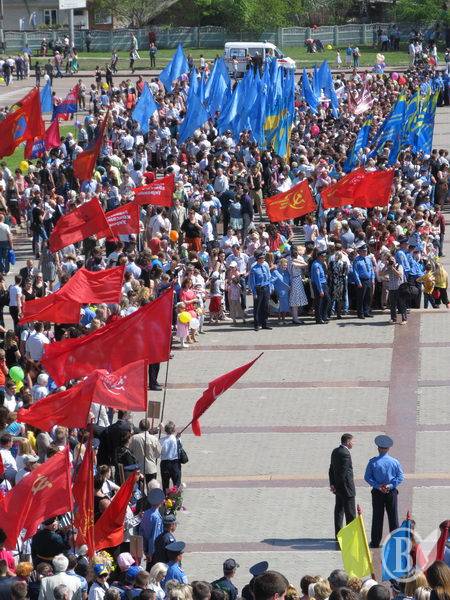 І ще одне – на мітинг вийшла згуртована група прапороносців з десятками синіх полотнищ Партії регіонів. Що, не можна було прийти без демонстрації своїх партійних уподобань?! Ще можна зрозуміти присутність на заходах стягів лівих і лівацьких партій. Вони, особливо комуністи, вважають себе ідейними наступниками КПРС – керівної партії СРСР. А яким боком до Дня Перемоги належить партія, створена у 90-х роках, хтозна…