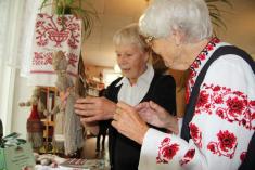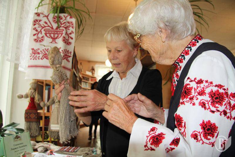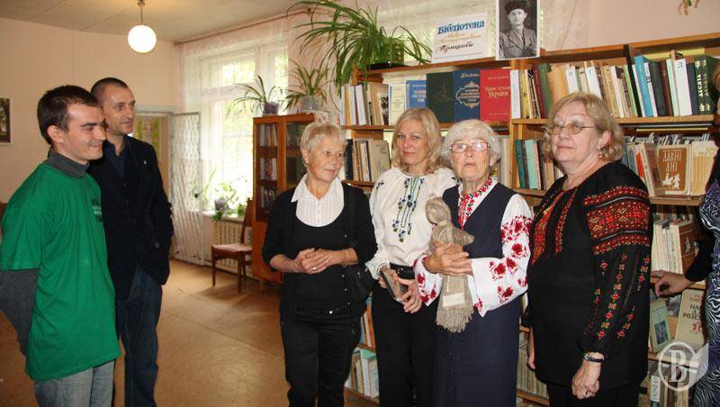 Да, в Канадско-украинскому библиотечном центре библиотеки им. М. М. Коцюбинского они познакомились с выставкой черниговской мастерицы, участницы международных и всеукраинских конкурсов и фестивалей, мастера по изготовлению авторских кукол-мотанок и вышивки лентами Ларисы Ганненко.