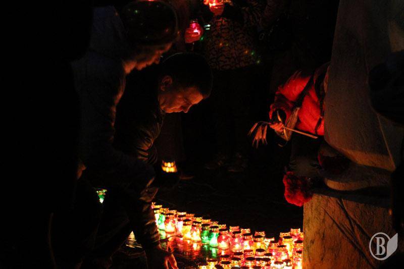 Біля пам'ятника Борцям за волю України учасники ходи виклали хрест зі свічок , а також провели короткий мітинг.