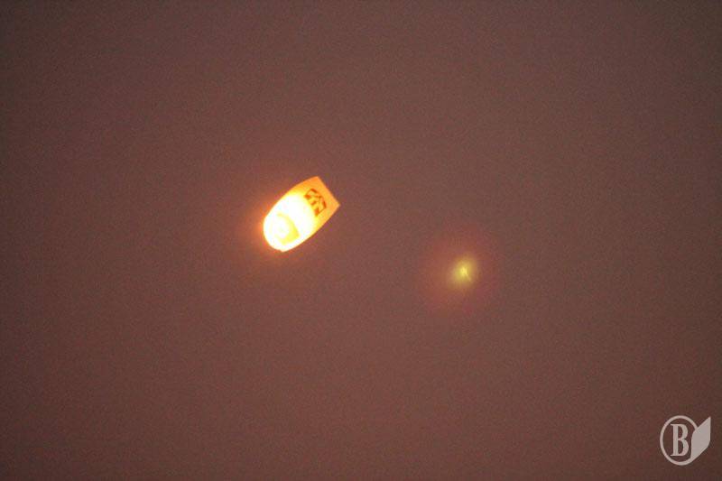 Жителі міста запустили в повітря 80 світних білих куль із символікою скорботної чорної фігури у вигляді хреста.