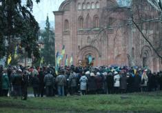 Чернігівці і гості міста зібралися в 15:30 біля П'ятницької церкви де почався молебень, який служили священики Української православної церкви Київського патріархату на чолі архиєпископом Чернігівським і Ніжинським Євстратієм (Зорею).