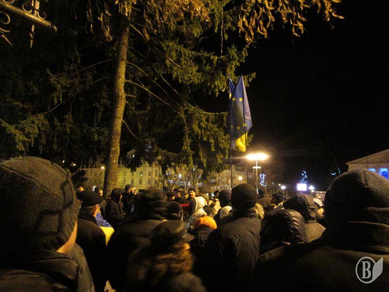 Перший - від 10:00 до 11:00 біля обласної ради за участю партій, які демонстративно згорнули свої партійні прапори задля євро інтеграції. Орієнтовна кількість учасників 150 чоловік.