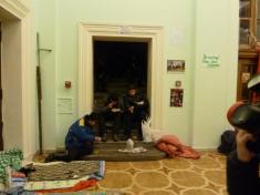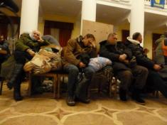 Там відбувається облаштування барикад на випадок штурму. Словом - картинка вечора.