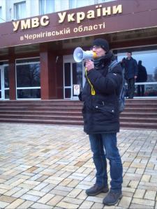 Свыше 35 черниговских журналистов требовали около здания областного управления Министерства внутренних дел в Черниговской области отставки министра Захарченко и прекращения истязаний и избиения журналистов в нашем государстве при бездеятельности милиции.
