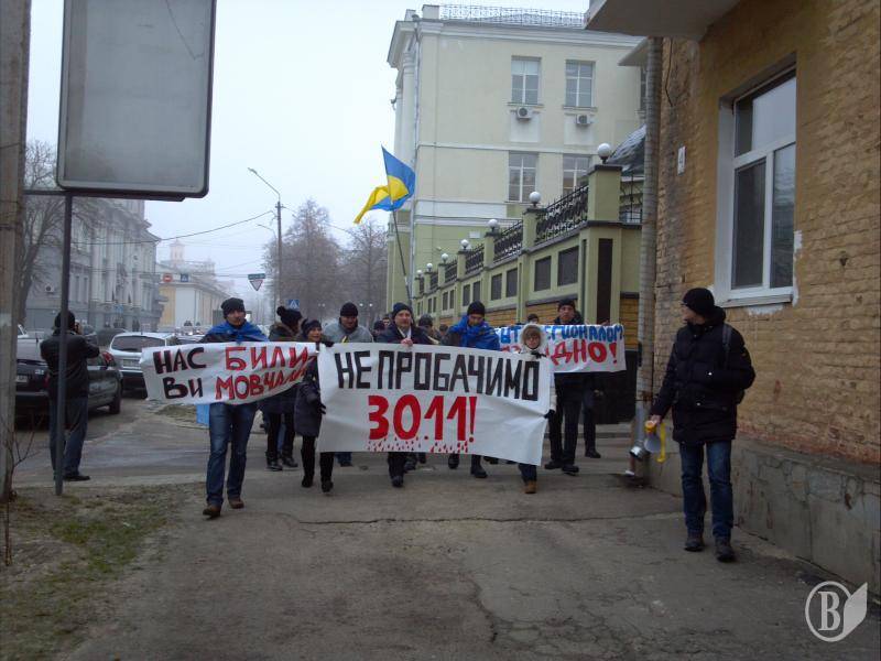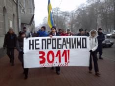 Вони тримають у руках гасла: «Не пробачимо 30 листопада!», «Нас били – ви мовчали!», «Быть регионалом стыдно!».