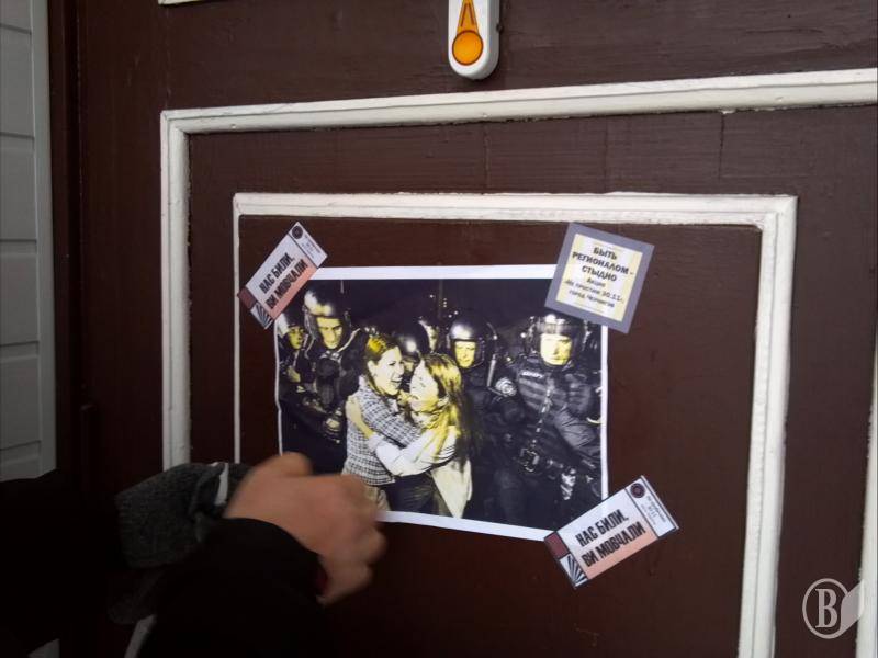 На двері офісу вони наклеїли наліпки «Быть регионалом стыдно» та «Нас били – ви мовчали».