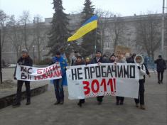 Після відвідин обласної державної адміністрації активісти рушили до міського управління міліції. Там вони провели короткий пікет та вручили свої вимоги до міліції.