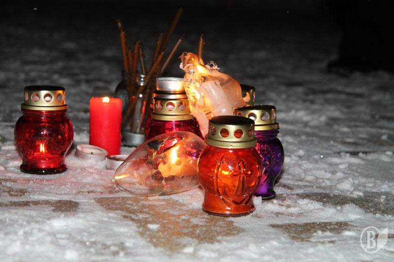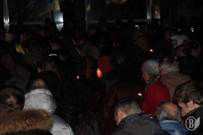 Священник Украинской православной церкви Киевского патриархата из церкви Святой Екатерины отслужил поминальный молебен по погибшим на Грушевского.