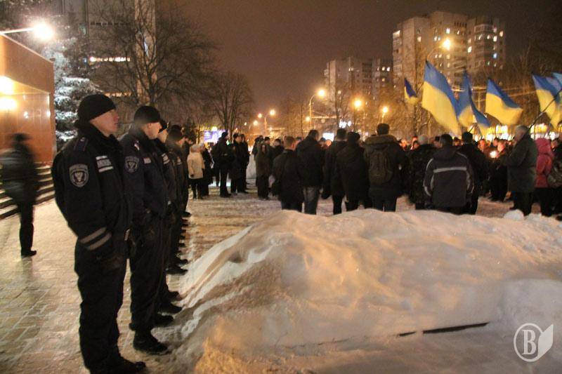 Митинг под управлением МВД длился немногим больше получаса. Потом колонна черниговцев двинулась к памятнику Борцам за волю Украины около Катерининской церкви.