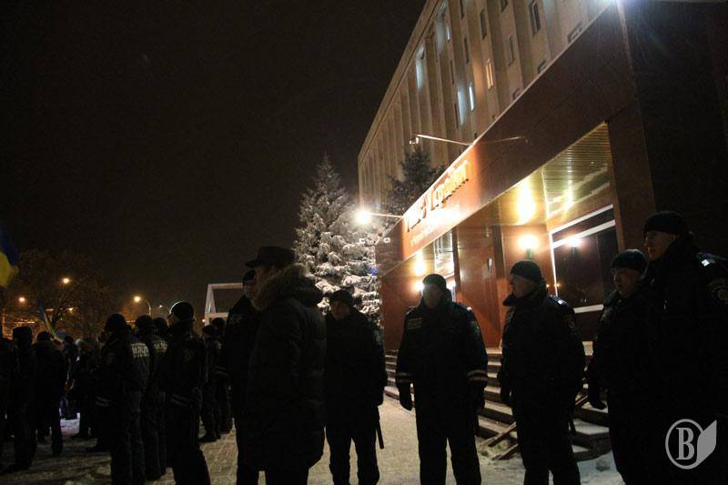 Около 600 человек пришли вечером 22 января от площади в Чернигове к управлению Министерства внутренних дел Украины, чтобы выразить свой протест против убийства 5 протестующих на улице Грушевского в Киеве.