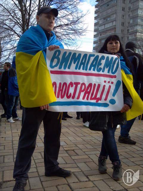 Они настаивают, что всех поставили перед фактом: без люстрации, вопреки мнению общества нам прислали очередного варяга - харьковского милиционера Демченко, который до последнего призывал защищать власть Януковича.