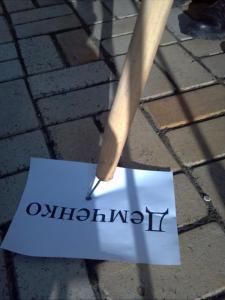Як повідомляв «Високий Вал» і транслював у прямому ефірі, сьогодні після 15 години біля приміщення управління МВС України в Чернігівській області члени «Правого сектора» протестували проти призначення Олега Демченка та вимагали від нього написати заяву про відставку (повний запис прямої трансляції):