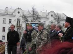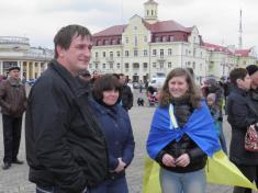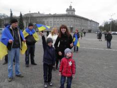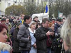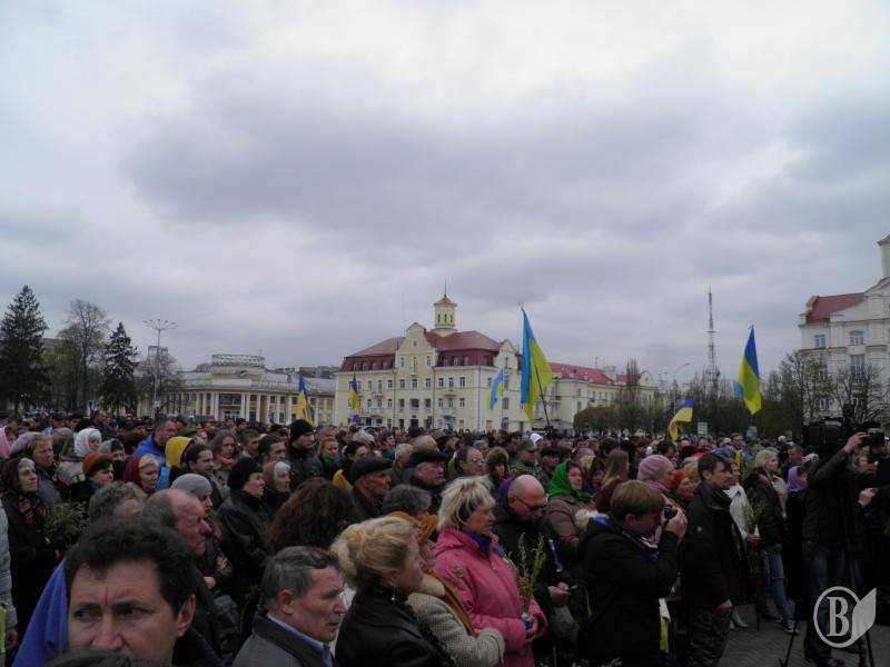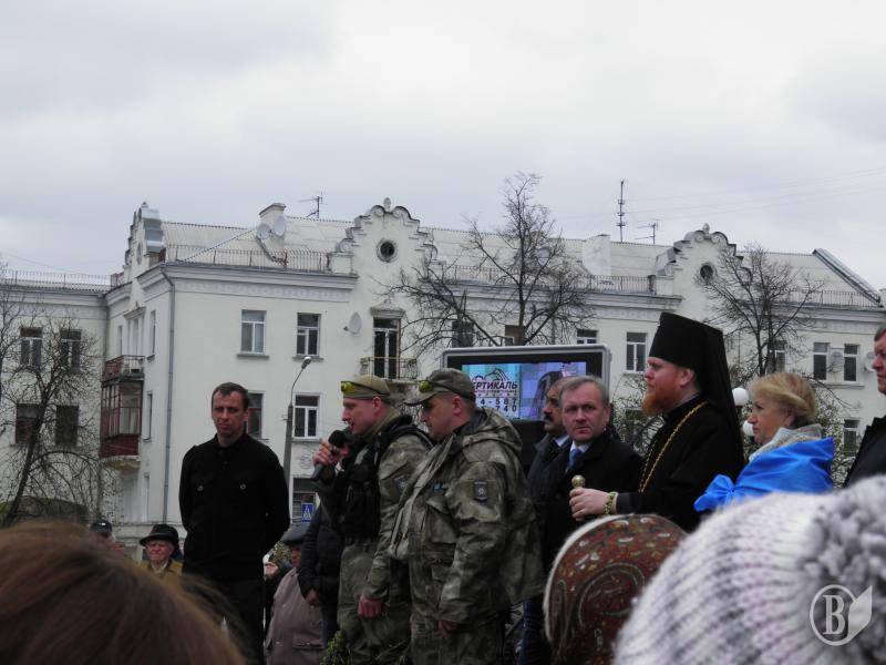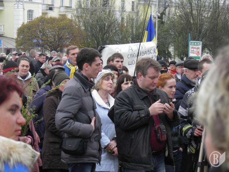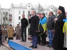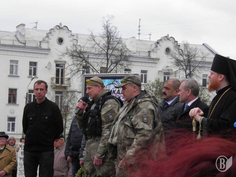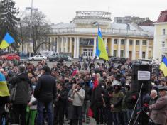Зі сцени, зробленої спеціально для недільних зустрічей поблизу облмуздрамтеатру імені Шевченка, виступали також члени народної самооборони, представники місцевих громадських організацій та інші активісти.