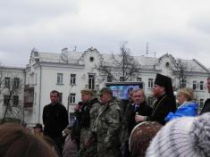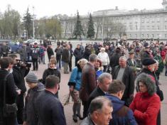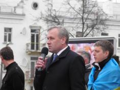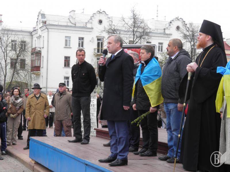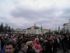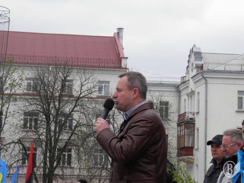 До речі, на Красну площу на віче приїхали також телевізійники з столичного каналу «112», щоправда без «ляпу» не обійшлося – журналістка в прямому ефірі переплутала прізвище голови обласної ради і вийшло, що замість Миколи Звєрєва на віче "виступав" пан Соколов.