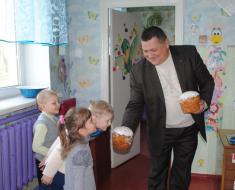 Як і годиться, напередодні свята вони відвідали малечу не з порожніми руками. Солодкі подарунки, а це майже три сотні запашних пасок, передав дітлахам народний депутат України Валерій Дубіль. Вручаючи великодні смаколики, та вітаючи зі святом, депутати також зачитували малечі та їхнім вихователям вітальну адресу від Валерія Олександровича.