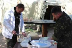 Діють польові кухні та їдальні, які забезпечують повноцінне триразове харчування особового складу, медичні пункти, бані, намети для відпочинку та проведення дозвілля військовослужбовців.