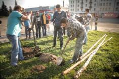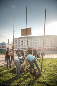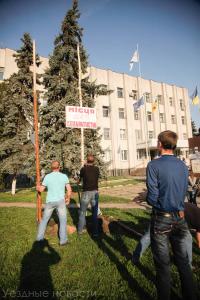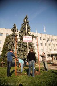 Активісти ніжинської самооборони майдану, щоб попередити заздалегідь охочих покаламутити воду в місті, вкопали три палі просто на "лобному" місці в центрі Ніжина.
