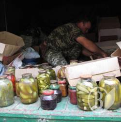 Призыв не остался без внимания. Люди приносили, у кого что есть: огурцы, помидоры, варения, салаты.