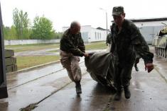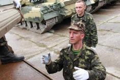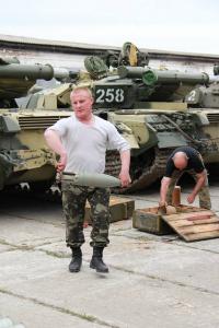 Вскоре мы пошли на обед. Обычно солдаты в столовой почти не едят, туда ходят чтобы разве что похлебать супца. Трапеза у меня была спартанская. Салат из буряка, жидкий суп и … повторно используемая одноразовая посуда. И по виду моей ложки было видно, что ее грыз очень голодный солдат, а может даже и микромайор. Не могу сказать, что я наелся, но потом это поправили в каптерке – подкормив консервами и бутербродами. Спасибо им за это огромное. Кроме того, местное население и самооборона помогают служивым едой. После подзаправки, мы снова отправились в боксы. Там я уже смог посидеть в танке. На вид грозная махина, а вот поди ж ты: в бою живет не больше 5 минут, плюс если услышал, что слой активной брони с коробки снят взрывом – беги. Грустно было узнать, что если дуло танка стоит прямо, то водитель танка не выберется из машины в случае пожара. И еще добавьте туда новые противотанковые системы….короче страшилок я наслушался.