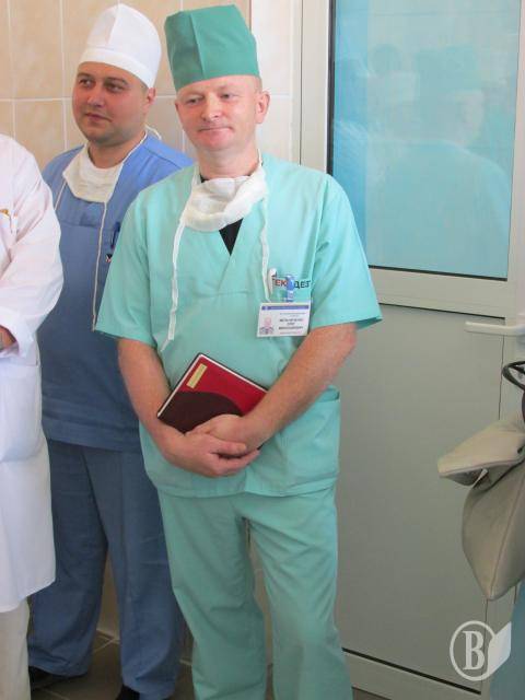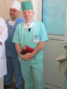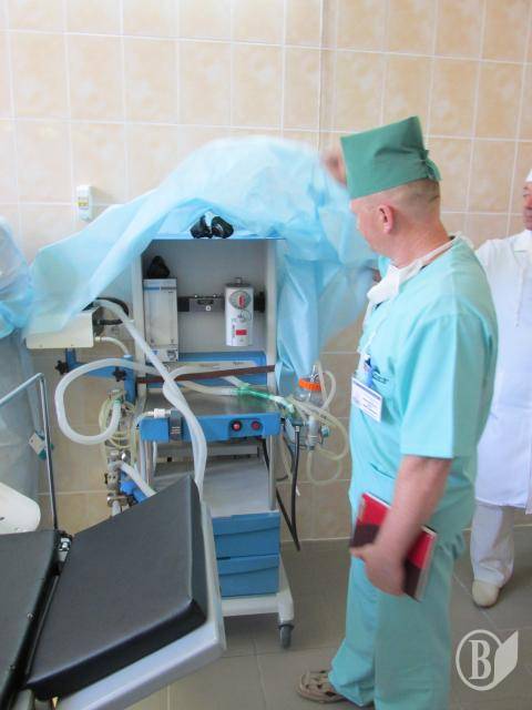 Начальник хірургічного відділення госпіталю майор медичної служби Анатолій Отрошко проводить екскурсію операційними. Окрім блискучої чистоти привертає увагу і новеньке обладнання: апарат для штучної вентиляції легень(до речі, вітчизняного виробництва), анестезіологічний прилад, операційні лампи а також новенькі операційні столи.