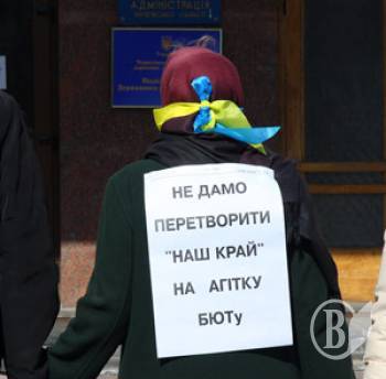 На фото - один из моментов протеста части коллектива газеты "Наш край" против политики основателя 23 марта 2010.