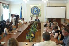 Фото на прес-конференції - Віктора КОШМАЛА, а знімки із зони АТО демонструвалися через проектор