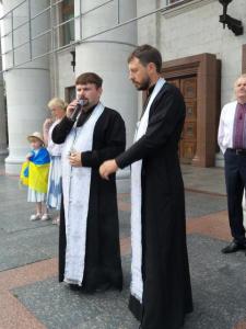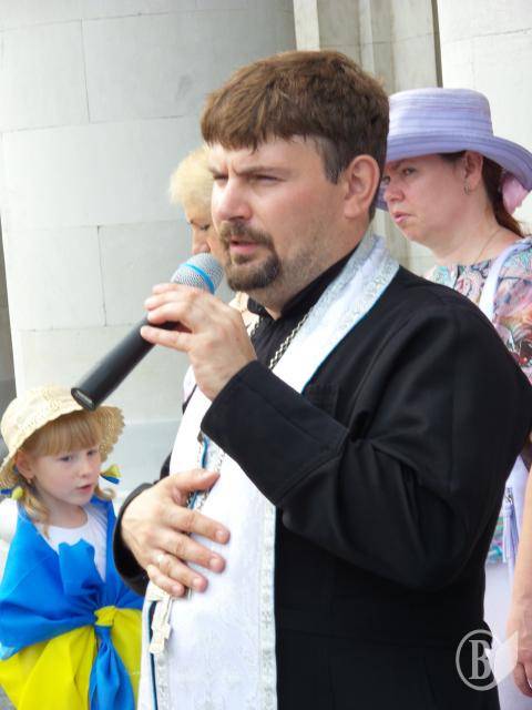Після виконання державного гімну України і молитви слово взяв депутат обласної ради Віктор Лазар.