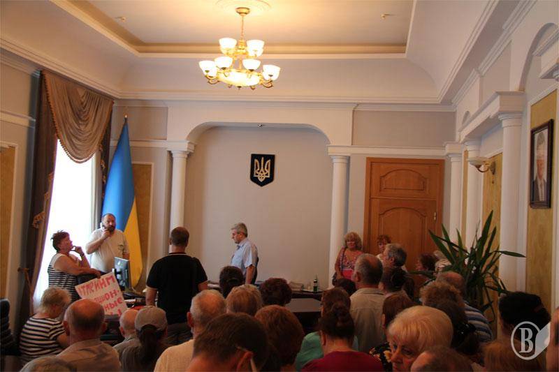 Около 100 протестующих вместе с инициаторами зашли в кабинет главы Черниговской областной государственной администрации Владимира Ивашка и требовали не повышать в городе коммунальные тарифы.