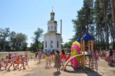 На цьому меценатські подарунки, як зазначалося вище, не закінчилися. Епіцентр свята перемістився до Заудаївського мікрорайону Прилук, де поблизу каплиці Святителя Іоасафа Бєлгородського на малечу чекав уже шостий майданчик, зведений у рамках благодійного проекту в місті та районі.