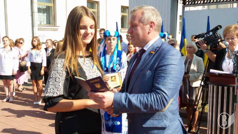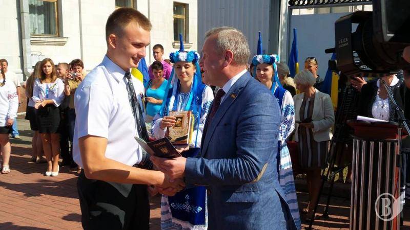 Урочиста церемонія підняття Державного Прапора України та акція “Я – громадянин України” з врученням паспортів України відбувається в Чернігові на Красній площі.