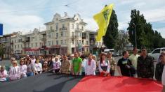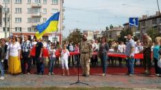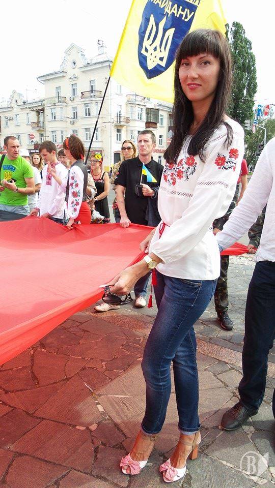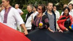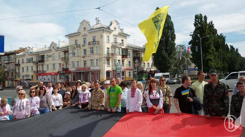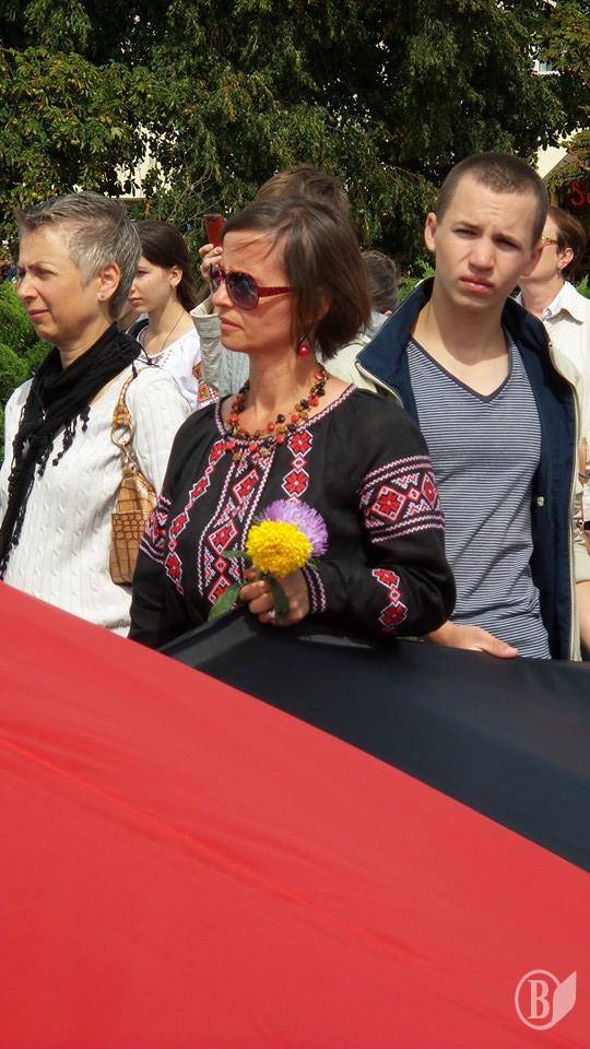 Чернігівські патріоти після закінчення офіційних заходів 24 серпня пройшли з державним синьо-жовтим прапором і та прапором українських націоналістів по центральній алеї міста.