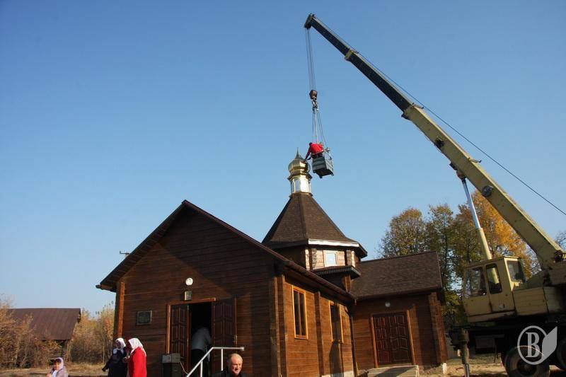 Уперше на Чернігівщині кандидат у Раду установив хрест на купол церкви - фото,відео