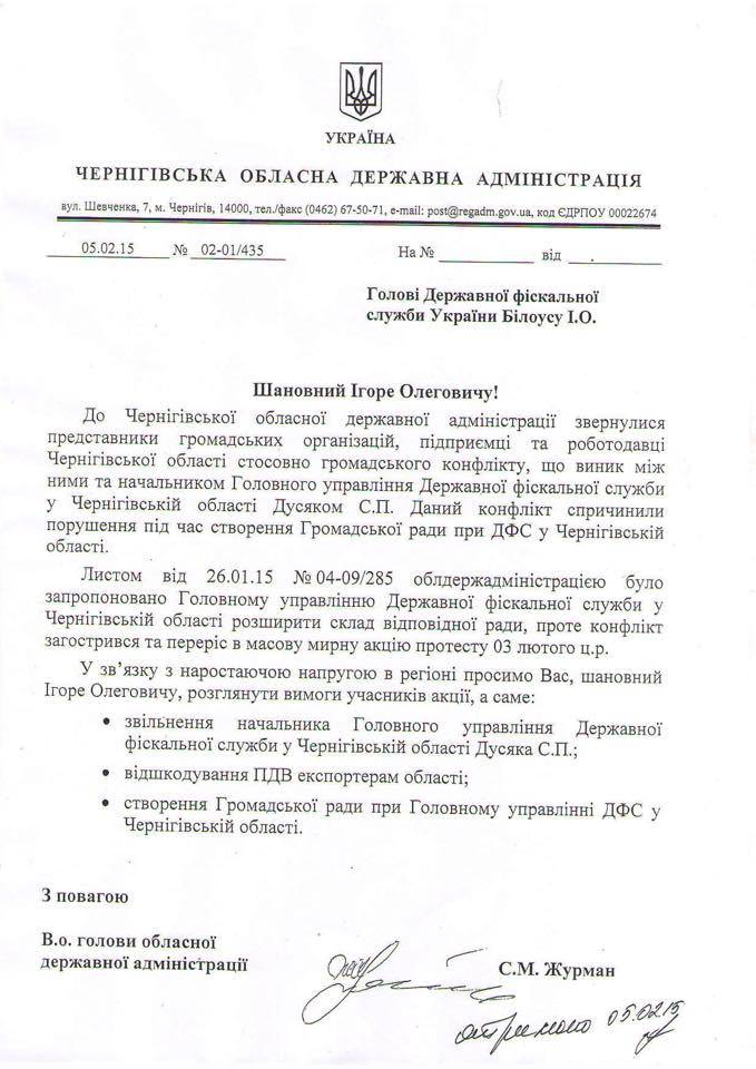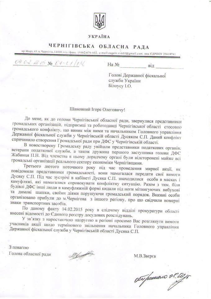 Також підприємці повідомили, що чергова акція протесту проти свавілля начальника обласної ДФС (податкової) служби у Чернігівської області Дусяка С.П та його найманців відбудеться 18 лютого 2015 року о 10:30, за адресою: м. Чернігів, вул. Комсомольська,11.