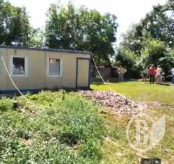 Наконец после переворачивания во всем виновного строительного вагончика