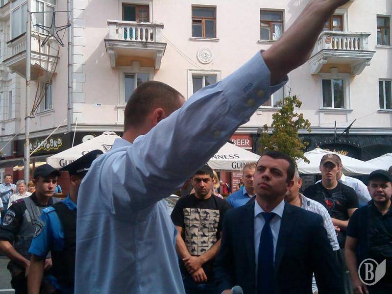 Глава Кулич и милиционер Шевцов говорят с пикетчиками из "Черниговторфа"