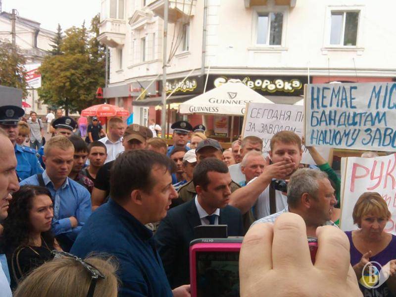 Сначала начальник черниговской городской милиции предупредил участников пикета, чтобы они не прибегали к противоправным действиям. А потом в ход пошла тяжелая артиллерия – глава областной государственной администрации Валерий Кулич. Он уговаривает протестующих, что их вопрос решится. Но они ему не верят: