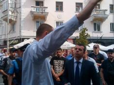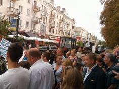 Встреча с пикетчиками состоялась на подступах к главному помещению областной исполнительной власти, как раз напротив ряда кафе перед центральной площадью города.