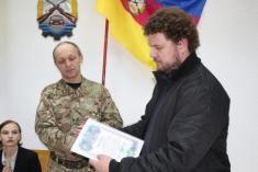 Из зоны проведения АТО эти благодарности были переданы на Черниговщину. Приятную миссию награждения волонтеров выполнил участник АТО, ветеран Вооруженных Сил Украины и 13 отдельного мотопехотного батальона, председатель Черниговской областной организации общества содействия обороны Украины подполковник запаса Игорь Бизган.
