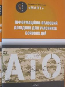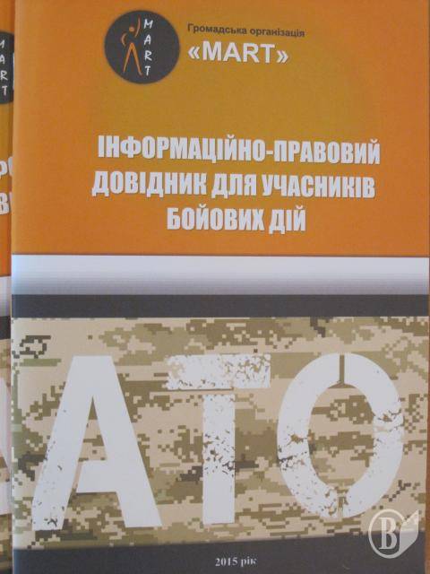 Крім того, окремі довідники розробили для членів родин загиблих та для учасників бойових дій (УБД). «У них міститься вся інформація щодо законодавства, про гарантії та пільги, гарантовані державою, алгоритм їх отримання, перелік необхідних документів, - пояснив Д. Науменко. – Довідники потраплять до обласного військкомату, де один з них видаватимуть разом із посвідченнями УБД».