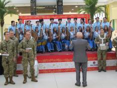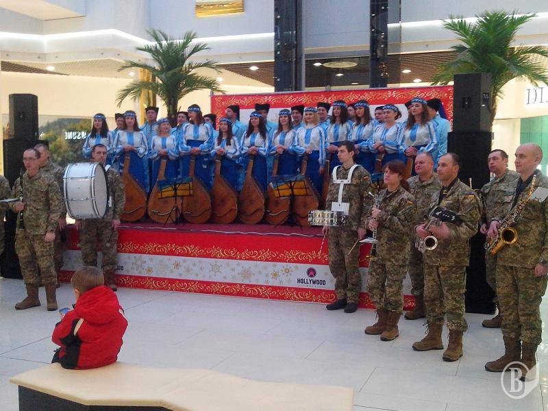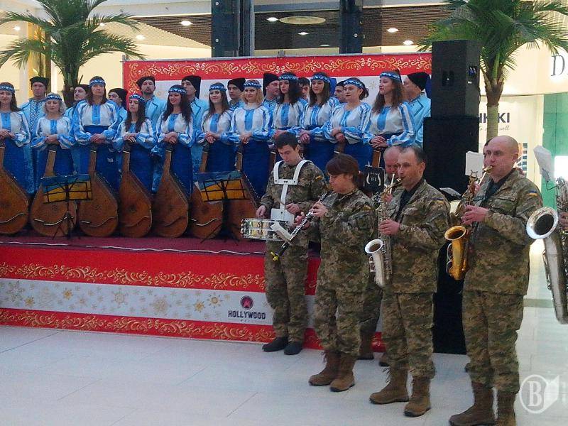 В Чернигове духовой оркестр Военно-музыкального центра Сухопутных войск Вооруженных Сил Украины вместе с капеллой бандуристов имени Остапа Вересая областного филармонического центра выступал в ТРЦ “Голливуд”.