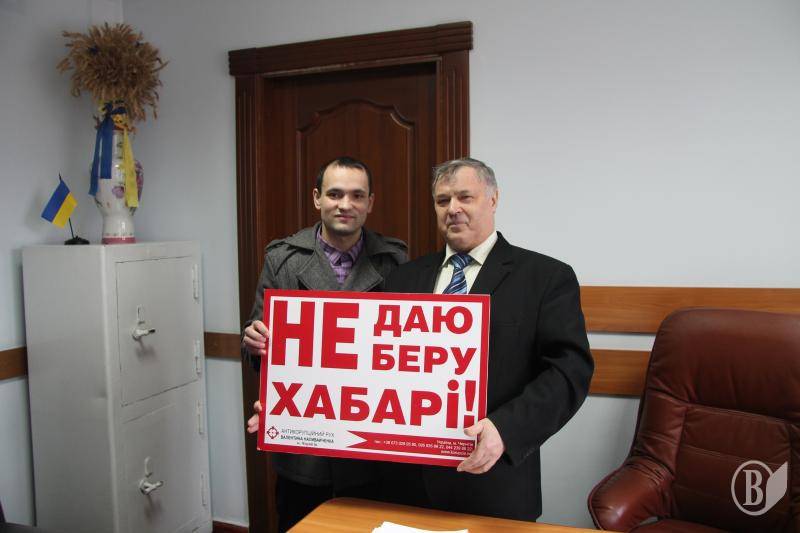 Голова Деснянского совета и исполкома Владимир Грецкий поддержал акцию и дал разрешение на размещение информационной нашлепки на дверях «Не даю, не беру взятки!» и таблички с надписью «Сообщить о коррупции по телефону...».
