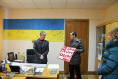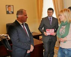 Он отозвался об акции в целом положительно и позволил закрепить табличку с надписью «Сообщить о коррупции по телефону...» в приемной администрации.