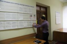 Активисты закрепили таблички около информационных стендов с надписью «Сообщить о коррупции по телефону...» во всех без исключения учреждениях. Это не вызывало возражений.