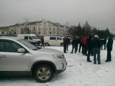 Перевозчики начали свою акцию на Красной площади Чернигова.