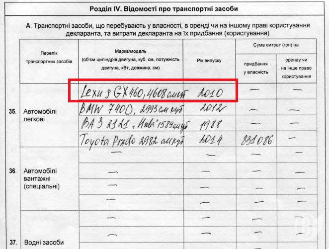 А в прошлогодней декларации господина Кулича, кроме вышеназванного набора транспорта, был еще и Lexus GX 460 с двигателем солидного объема 4,6 л.